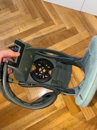 Fijaciones de snowboard Burton Diseñadas para freestyle. IMPORTANTE: Donde se señaliza con una flecha roja falta una pieza que se ha roto que es la que bloquea otra pieza, para determinar la inclinación de las fijaciones, por tanto no se podrá utilizar. No obstante no influye en tu manera de esquiar si no utilizas inclinación añadida. - Fijaciones de temporada 2024 - Marca Burton. -Para botas 27.5 (42.5 EUR) -Con tornillos para tabla burton y convencionales, incluidos