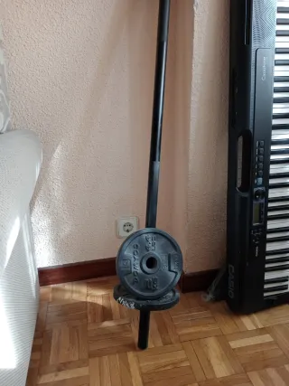 El Pack de pesas para entrenamiento en casa , Originalmente costaron 100€ con las mancuernas. - Discos de diferentes pesos. - Barra para discos.