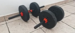 Par de mancuernas de 11kg cada una más material de musculación en mi perfil: mancuernas discos pesas kettlebel Domyos Decathlon 5kg 10kg 20kg barras ketelbel ketlebel deporte fitness gym