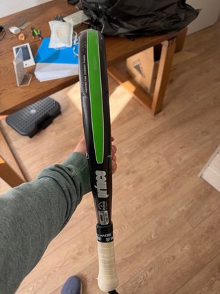 Vendo pala de pádel Prince Tour Carbon un balance de 38 con uso normal. Pala fabricada en carbono, equilibrada y cómoda, ideal para jugadores intermedios o avanzados que busquen buen control y sensaciones sólidas en el golpeo. 🔹 Estado: • Uso normal • Varios rasguños visibles del uso (ver fotos) • Sin grietas ni roturas estructurales • No tiene protectores laterales • No incluye funda • Grip en buen estado 🔹 En juego: • Buen control • Golpeo sólido Se vende por cambio de pala. Entrega en mano o enví