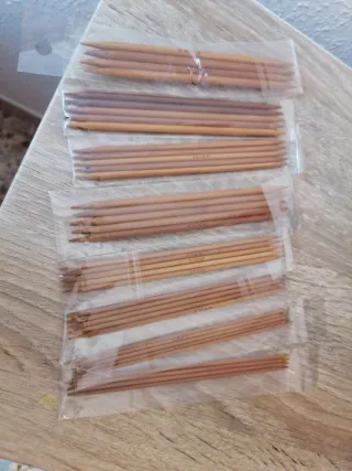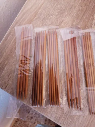 Conjunto de agujas de tejer de doble punta fabricadas en bambú. - Material: Bambú. - Diseño: Doble punta.