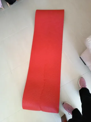 Esterilla acolchada de goma de color rojo, ideal para ejercicios. Medidas 180x52cm