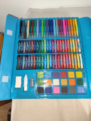 Completo set de arte para niños con 208 piezas. NUEVO 100% - Incluye distintos metodos para dibujar y pintar. Algunos folios y clips. - Diseño colorido y atractivo. - Apto para niños de +3 años. - Diseñado para que puedan jugar 2 personas a la vez - Perfecto para regalo de navidad