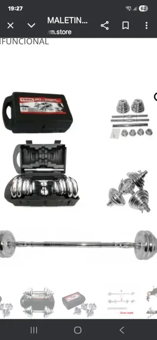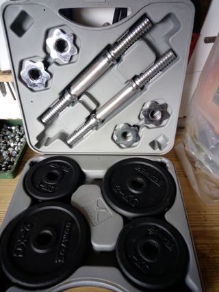 Peso total incluidas barras de mancuernas 20kg NO HAGO CAMBIOS NI RESERVAS PRECIO NO NEGOCIABLE NO CONTESTO OFERTAS SOLO ENTREGO EN SABADELL CENTRO
