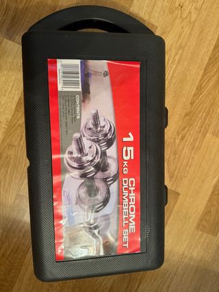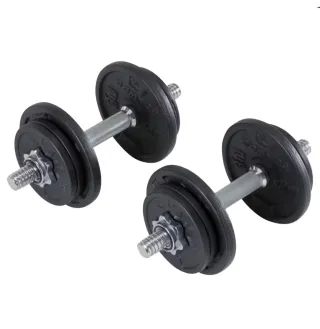 Set de mancuernas ajustables de 15kg, ideal para entrenar en casa. - Incluye 2 barras de mancuerna de 35cm. - Incluye 1 barra de conexión de 40cm para convertir en barra. - Incluye 4 discos de 1.5kg. - Incluye 4 discos de 2kg. - Incluye 4 tuercas de seguridad.