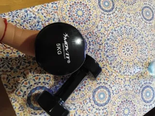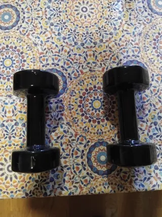 Dos mancuernas negras de 5 kilos cada una. Nunca se han usado, demasiado peso para mí entrenamiento. Cuento con que el paquete tiene que ser de 10 kilos para poder enviarlo, así que las dejo en 18€, cuestan 35€ (podéis buscarlas).