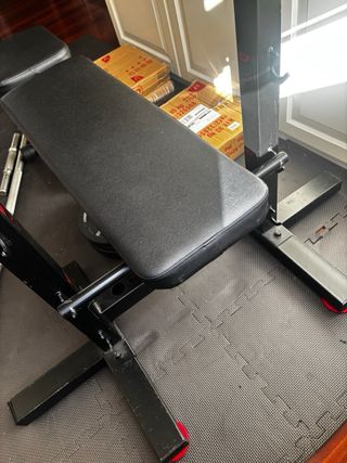Se vende completo por falta de espacio y de uso. Banco musculación con rack plegable Corength - CORENGTH Banco de musculación con rack ultra compacto, estable y robusto. Peso máximo de 100 kg en rack con barra y 100 kg en el banco. Barra compatible de 1,55 a 2 m de longitud . Soportes ajustables. Talla: Talla única Color: negro Precio unidad 129,99 € Kit mancuernas y barras 93 kg musculación Corength - CORENGTH Kit de mancuernas compuesto de 1 barra de 1,75 m (160 kg de carga máxima), 2 barras macizas de 35 cm de largo de 2 kg, 6 cierres, 4 discos de 10 kg, 4 discos de 5 kg, 8 discos de 2 kg y 4 discos 1kg Costo todo 390 €