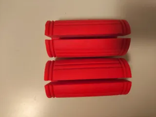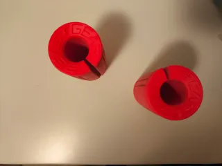 Par de Beast Grips de BeastGear para barras de gimnasio. Dificulta el agarre de la barra o mancuerna para entrenar el agarre. - Color rojo. - Diseño con corte para fácil colocación. - Logo de la marca grabado.
