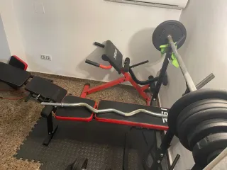 🔥 ¿Quieres tu propio gym en casa sin gastar mucho? Este pack es un CHOLLAZO. ⚠️ Incluye una guía de ejercicios que podrás hacer en estas máquinas!! 🏋️ Incluye: • Banco multifunción resistente • Barra larga + discos • 3 mancuernas ajustables • Pesas pequeñas • Banco de abdominales con inclinaciones 💪 Entrena pecho, brazos, hombros, piernas y core sin pagar gimnasio. 💰TE VAS A AHORRAR MUCHO DINERO! Yo entrené con esto dos años y mejoré muchísimo mi físico. Material cuidado y muy completo. Si lo ves, te lo quedas 😎 ¡Escríbeme y te lo reservo.