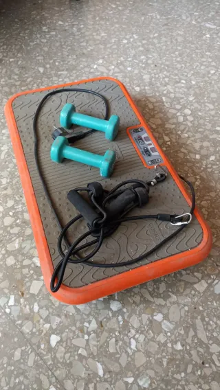 Plataforma vibratoria Vibroshaper. - Incluye dos mancuernas. - Incluye cuerda de saltar.