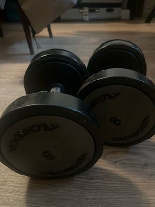 Dispongo de un Set de Mancuernas marca TECHNOGYM modelo DUMBBELL practicamente nuevas, habiendo sido usadas por una única persona durante 2 meses en el hogar, en perfecto estado, como nuevas, mimadas 💙 Se compone: - 4Kg - 6Kg - 8Kg - 10Kg - 12Kg - 14Kg Valor nuevas 825€ Mallorca zona Son Moix