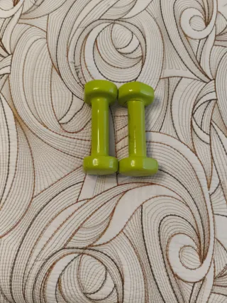 Par de mancuernas de 1 kg cada una. Ideales para ejercicios en casa. - Color verde brillante. - Diseño compacto.