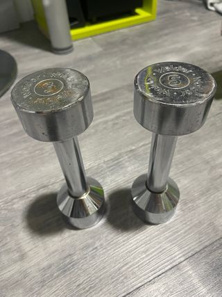 Pareja de mancuernas de 8kg cada una en total, ideales para tu entrenamiento. Están en buen estado y listas para usar. - 2 mancuernas ajustables. - 8 discos( 4x2.5kg y 4x1.5kg) - Barras con agarre cómodo. Palabras clave: gimnasio, gym, domyos, decathlon, pesa, pesa rusa, kettlebel, mancuerna, disco, peso, halterofilia, barra, cierre, pinza, barra, dominadas, gervasport, tentable, 25mm, 28mm, 30mm, barra romana, barra h, barra z, zeta, banco, press, banca, bodypump, 1kg, 2kg, 5kg, 10kg, 20kg, olímpica.