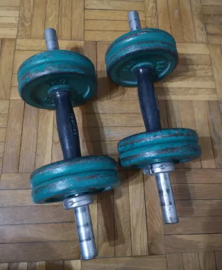 Se venden 2 mancuernas de 10kg con accesorios. Todo se ve en las fotos. No se dispone de comba. Palabras clave: gimnasio, gym, domyos, decathlon, pesa, pesa rusa, kettlebel, mancuerna, disco, peso, halterofilia, barra, cierre, pinza, barra, dominadas, gervasport, tentable, 25mm, 28mm, 30mm, barra romana, barra h, barra z, zeta, banco, press, banca, bodypump, 1kg, 2kg, 5kg, 10kg, 20kg, olímpica.