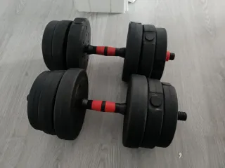 Dos mancuernas de 3kg cada una y dos mancuernas de 2 kg cada una.Se venden juntas, repito, se venden juntas.