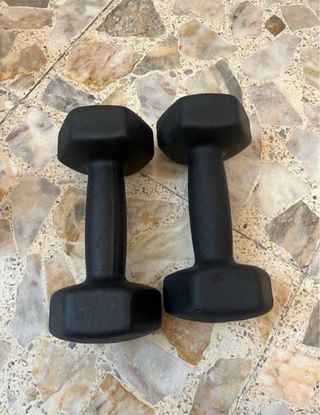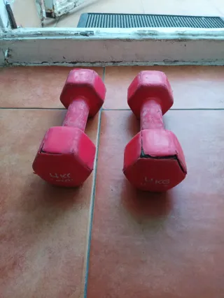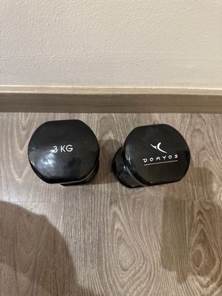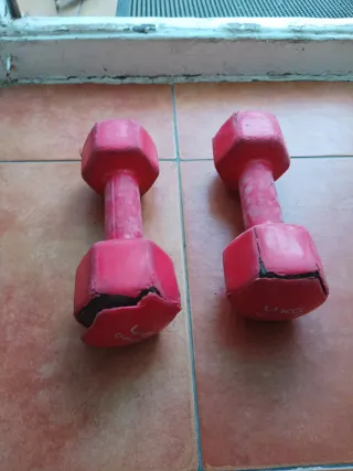 Pack de dos mancuernas Decathlon: - Una par de mancuernas de 1.5 kg. - Un par de mancuerna de 3 kg. Por separado 3€ por par.
