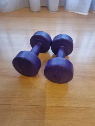 Pack de dos mancuernas de 2 kg cada una, perfectas para entrenar en casa. - Color: Morado. - Peso: 2 kg cada una.