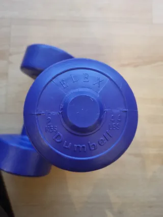 Par de mancuernas de 2 kg cada una, perfectas para entrenamientos en casa. Tienen uso de allí su precio. - Color azul. - Diseño hexagonal para evitar que rueden.