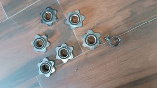 4 mancuernas con barra de 2 kilos + 2 discos de 2k + 2 discos de 1k= 17€ cada una 1 Mancuerna con barra de 2 kilos + 4 discos de 1k= 14€ 1 Mancuerna con barra de 2 kilos + 2 discos 1,25k= 14€ (la de los discos amarillos de la foto) Todas de diametro 28mm (decathlon)