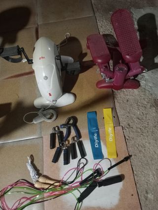 1 stepper-caminadora 15€ 1 stepper-caminadora eléctrico 35€ 3 combas 10€ 3 cintas de fuerza 5€ 1 cuerdas trx 20€ 3 hand grip 15€ No leer: gimnasio gym pesas mancuernas multiestacion multifunción tríceps cinta