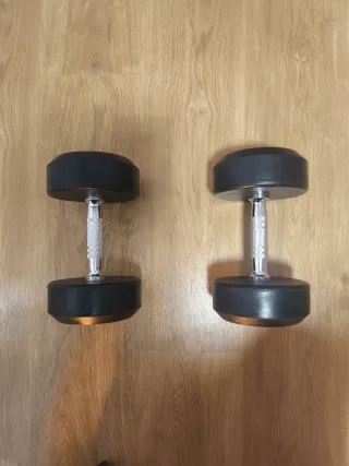 Dos mancuernas de 10 kg cada una. Practicamente nuevas.