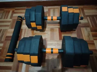 Mancuernas ajustables con barra 20 kg total.