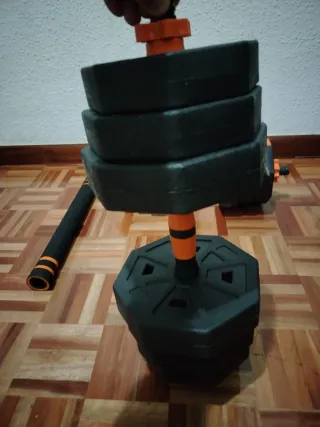 1 mancuerna x 20 kg 2 mancuernas x 10 kg 1 barra 7 kg 1 softkettlebell x 10 kg