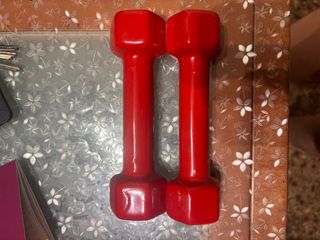 Par de pesas rojas de 1kg cada una. Son perfectas para hacer ejercicio en casa. - Ideales para principiantes. - Color rojo. - Material resistente.