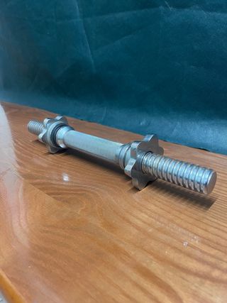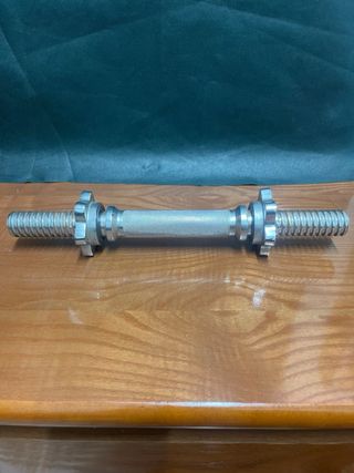 Mancuerna con roscas para discos. - Barra de pesas con roscas. - Diseño plateado.