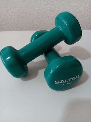 Par de mancuernas Salter de 1 kg cada una, perfectas para entrenamientos en casa. - Color verde brillante. - Diseño ergonómico para un agarre cómodo. ¡Las dos por 4 euros!