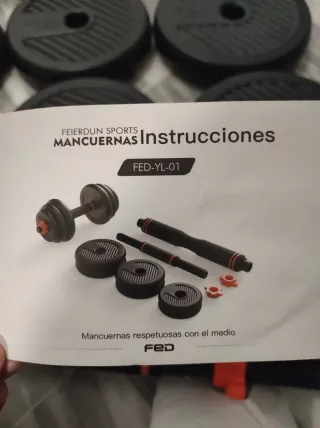 Kit de mancuernas ajustables de la marca FEIERDUN SPORTS. 25kg. - Modelo: FED-YL-01 - Incluye barras, discos y cierres. - Diseño respetuoso con el medio ambiente.