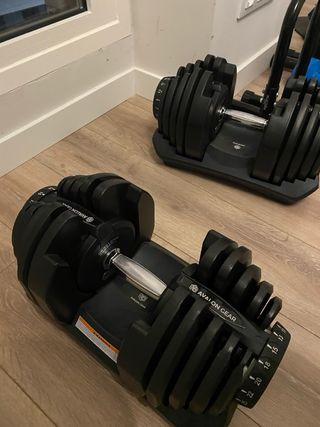 Set de mancuernas ajustables que se transforman en barra. - Incluye estuche para guardarlas. - Pesos de diferentes tamaños para ajustar la carga. - Barras de conexión para formar la barra. - 15-50 kg 15Kg.........................................70€ 20Kg.........................................78€ 30Kg........................................120€ 50Kg........................................190