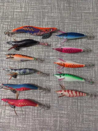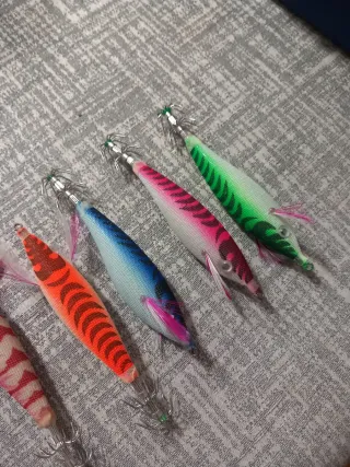 Lote de señuelos para la pesca de calamar y sepia, también conocidos como egis o pajaritos. Perfectos para la pesca de calamares, sepias y pulpos Lote 18€ Unidades sueltas 2,5€