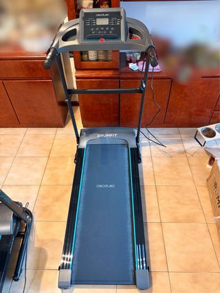 Cinta de andar Cecotec modelo Drumfit, ideal para mantenerte activo en casa. Es plegable para facilitar su almacenamiento. Niveles de iniciación, Pantalla LED, Ruedas de transporte, Altavoces, Portabotellas, Pulsómetro. Totalmente nuevo - Diseño moderno en color gris y azul. - Pantalla digital para visualizar datos de entrenamiento. - Superficie de carrera amplia.