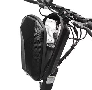 Bolsa rígida para manillar de patinete eléctrico. Perfecta para llevar tus pertenencias de forma segura. - Diseño moderno y resistente. - Color negro. - Cremallera. - Material duradero.