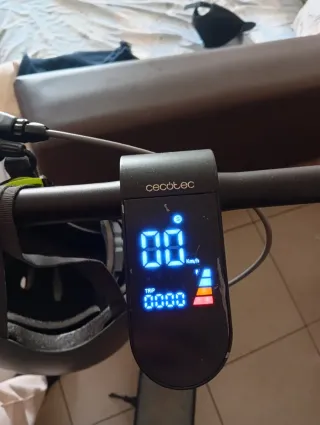 Patinete eléctrico Cecotec con pantalla digital. - Pantalla con información de velocidad y viaje. - Indicador de nivel de batería. - Diseño moderno.