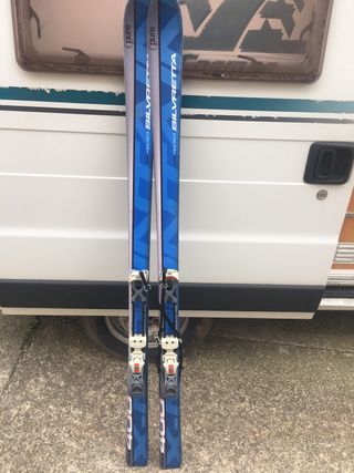 Esquís de la marca Rossignol con fijaciones. - Diseño en azul y negro. - Fijaciones incluidas. Opcion botas Encerado y cantos pulidos