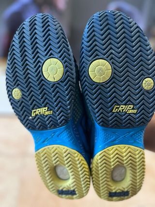 Zapatillas de pádel para hombre con suela de goma para un agarre óptimo. - Suela con diseño de espiga y círculos de pivote. - Detalle de logo GRIPLINE en la suela. - Combinación de colores azul y amarillo.