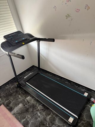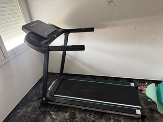 Cinta de correr plegable de la marca FitFiu Fitness. Diseñada para el hogar. Prácticamente sin usar. No se eleva. Lleva un tiempo parada, únicamente le hace falta engrasarla y lista para funcionar. Precio algo negociable. - Superficie de carrera gris. - Asas laterales negras. - Cable de alimentación negro. - Soporte Tablet - Hasta 20km/h