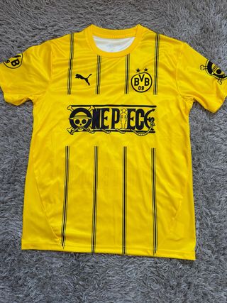 Camiseta de la primera equipación del Borussia Dortmund para la temporada 2024/25. Diseño inspirado en One Piece. - Color amarillo vibrante. - Detalles en negro. - Logo de Puma. - Escudo del BVB.