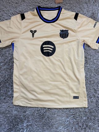 Segunda equipación del FC Barcelona para la temporada 2025/26. - Diseño en color dorado. - Escudo del club en el pecho. - Logo de Spotify. - Detalles en azul y negro.
