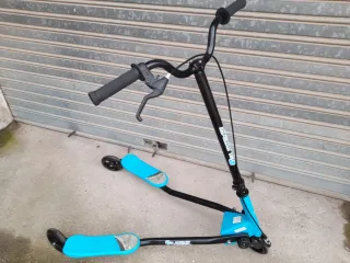 Patinete de tres ruedas en color azul, ideal para deslizarse y divertirse. - Diseño de tres ruedas para mayor estabilidad. - Manillar negro con puños de goma y freno. - Plataformas para los pies en color azul.