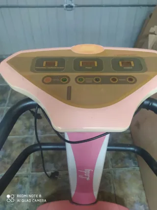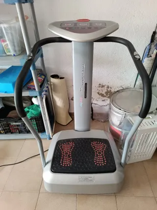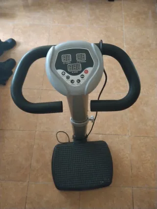 Plataforma vibratoria para ejercicio en casa. Diseñada para complementar tu rutina de entrenamiento. La tengo desde have tiempo pero la habré usado 10 minutos...está con polvo, pero esta bien. Tiene dos botonera, una arriba y otra abajo para cuando haces ejercicios sentado