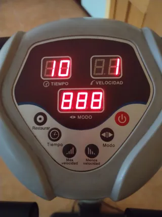 Máquina vibratoria para ejercicio en casa. - Pantalla digital con información de tiempo, calorías y velocidad. - Botones de control para modo, tiempo, calorías y velocidad. - Botón de inicio/parada. - Precio negociable. - Tiene asas para hacer ejercicios. - Hay que venir a buscarla.