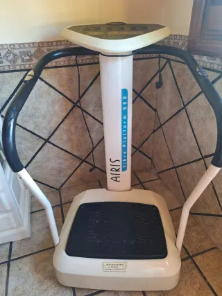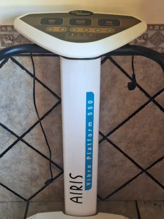 Plataforma vibratoria AIRIS Platform 550 en color blanco y negro en buen estado. Ideal para hacer ejercicio en casa, tonificar musculos y mejorar la circulacion. Características: - Varios niveles de vibración - Panel de control de programas - Asas de agarre para mayor estabilidad - Superficie de apoyo antideslizante - Muy fácil de usar La máquina está en muy buen estado y funciona perfectamente. - Vibra correctamente en todos los niveles - Apenas se ha usado - Sin golpes ni defectos 📍Recogida en Castellón Debido al tamaño no se realiza envío