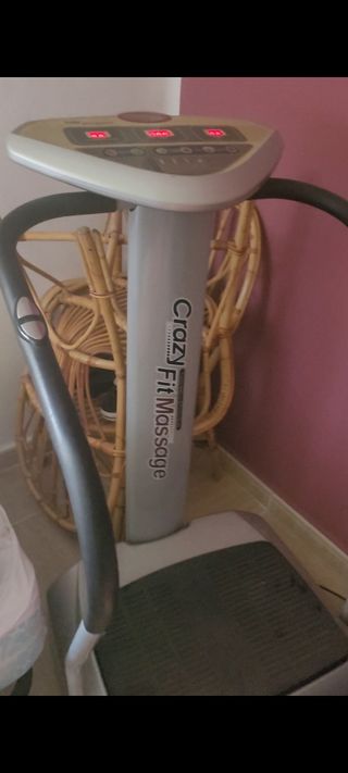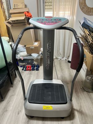 Se vende plataforma vibratoria Crazy FitMassage en buen estado. Es una máquina de color gris plata con detalles dorados. - Incluye plataforma de vibración y barras de apoyo. - Perfecta para hacer ejercicio en casa.