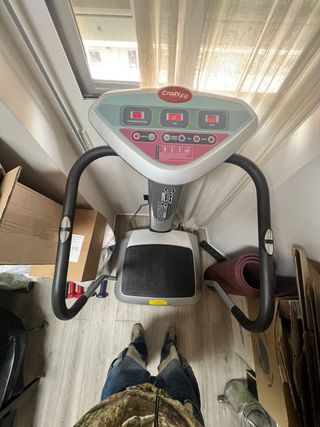 Vendo plataforma vibratoria en buen estado. Es una máquina de fitness usada, pero cuidada. - Modelo de plataforma vibratoria para hacer ejercicio en casa. - Incluye dos cuerdas para ejercicios adicionales. - La plataforma está en buenas condiciones, aunque algo usada.