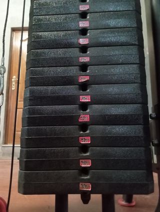 Máquina de gimnasio Incluye pesas de 20k y una banca de ejercicio. Se vende por no darle uso,está nueva y sin casi uso. Precio negociable.