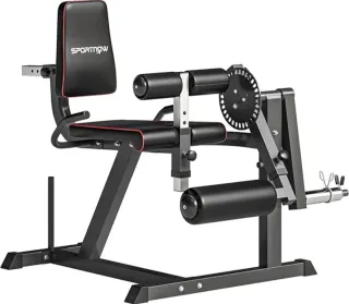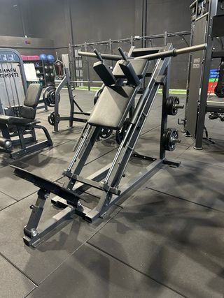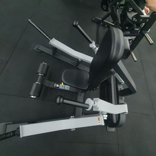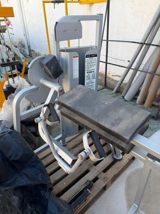 Máquina de gimnasio para ejercicios de piernas. - Estructura metálica. - Asiento acolchado. - Empuñaduras para el agarre.