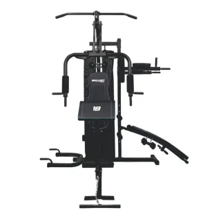 Equipo de gimnasio versátil para entrenar en casa. Diseñado para ofrecer una amplia variedad de ejercicios. - Estructura robusta de acero. - Asiento acolchado y respaldo. - Barra de dominadas integrada. - Poleas y cables para diferentes resistencias. - Soporte para pesas.